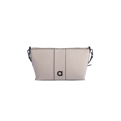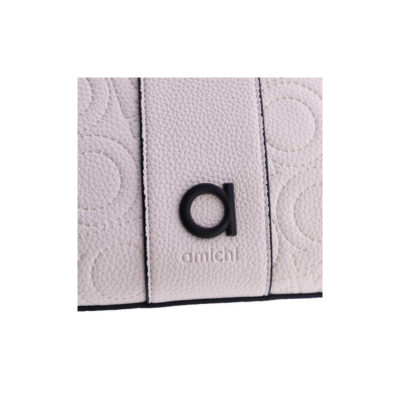 Práctico Bolso para mujer con bandolera para colgar de Amichi en color Marfil fabricado en piel sintética muy blandita y grabada con es sello de la marca que lo hacen un bolso único, el tamaño es pequeño.