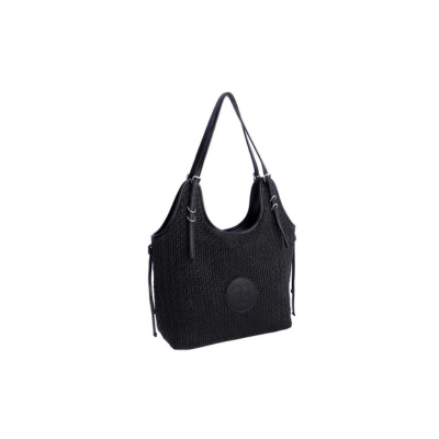Está confeccionado en rafia combinada con material vegano premium tipo piel (PU), con asas efecto piel que aportan un acabado elegante y resistente. Su diseño cómodo y versátil permite llevarlo en la mano o sobre el brazo gracias a su doble asa.
