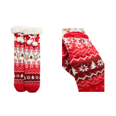 - Calcetines navideños de mujer con interior borreguito y detalle de pompones