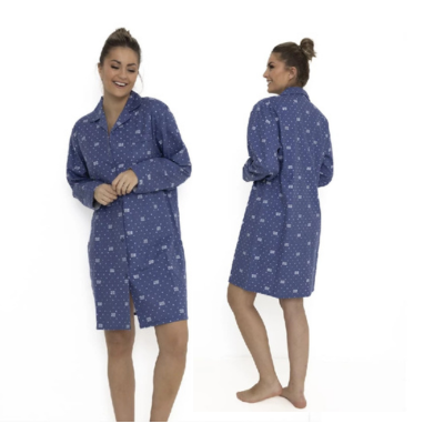 Camisón mujer Lacotex 643976 FranelaModelo por encima de las rodillas, manga larga y cuello tapeta con 3 botones.Estampado completo a cuadros y bolsillo en el pecho.Color: Fiordo costero AzulComposición: Algodón
