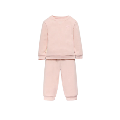 onjunto de chándal básico para bebé ideal para el día a día. Compuesto por una sudadera de manga larga y un pantalón jogger con interior afelpado, ofrece máxima suavidad y libertad de movimiento. Su diseño delicado con detalle bordado lo convierte en una prenda práctica y adorable para cualquier ocasión.