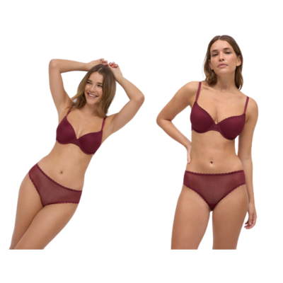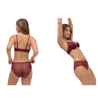 Conjunto de sujetador y braga midi con transparencias. Sujetador con aro y con relleno.