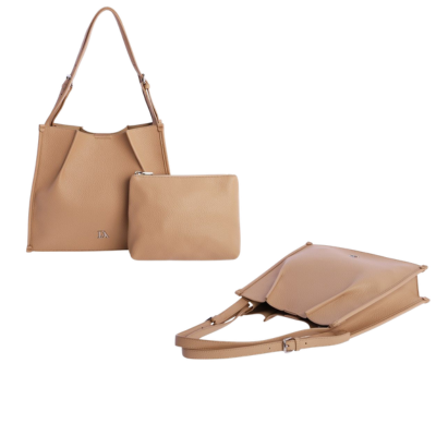 Bolso Shopper de Don Algodon de piel sintética con el logo de metal en la parte frontal. Asa con hebillas para ajustarse. Dispone de un bolso independiente en su interior.
