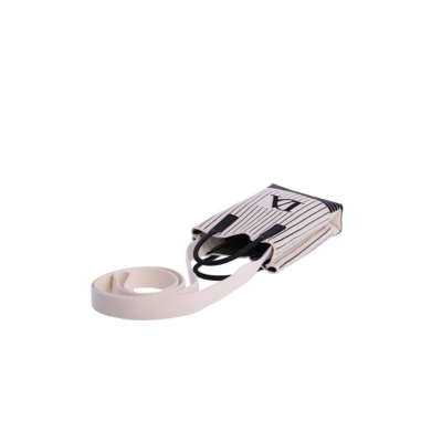 Bolso para móvil bandolera Coraline de Don Algodon de tejido de punto a rayas con logo de hilo en la parte frontal. Lleva un asa de goma para hacerlo de mano y una bandolera oculta de cinta de algodón, regulable. Medidas: 12 x 4 x 18 cm.