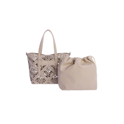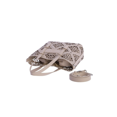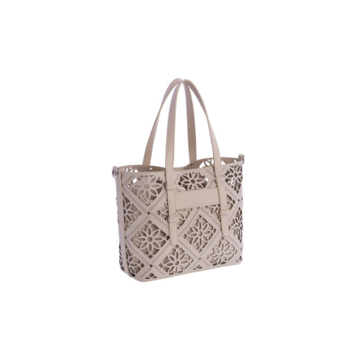 Bolso de mujer para llevar de mano o con bandolera en acabado picado de Don Algodon en color Marfil con accesorio extraíble de cierre tipo saco .