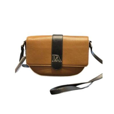 Bandolera de don algodón bicolor con detalle de solapa amplia con logotipo central.