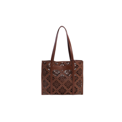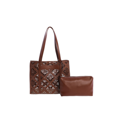 Bolso para mujer tipo sShopper con un acabado picado de Don Algodon en color Marron. Bolso semitransparente que incorpora un organizador para guardar tus objetos y mantenerlos ocultos.