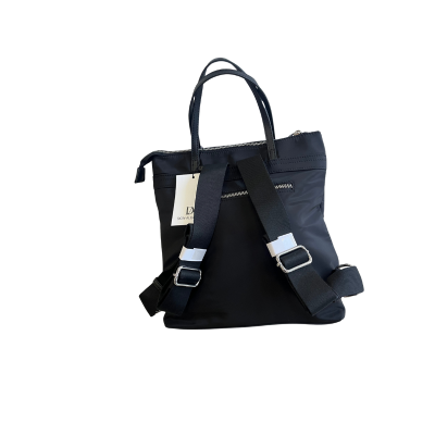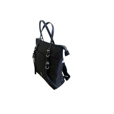 Mochila de Don Algodón en nylon, color negro con bolsillos interiores y exteriores.
