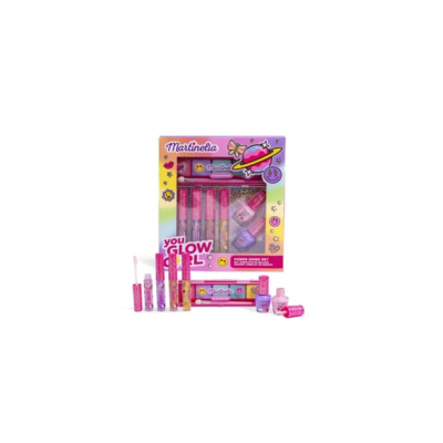 lip glosses brillantes, 5 sombras de ojos vibrantes y 2 esmaltes de