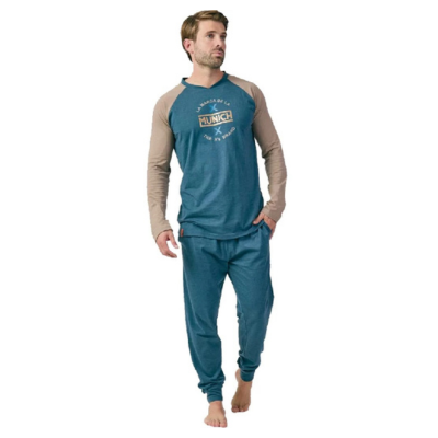 Pijama para hombre en azul y marrón con estampado central camiseta.