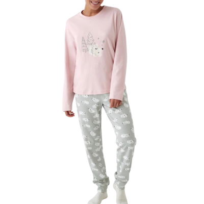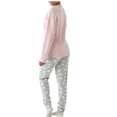 Pijama compuesto por pantalón largo estampado con puños y camiseta de manga larga, 100%Algodón con acabado interior suave