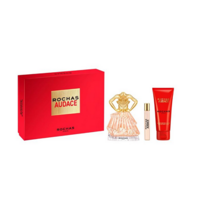 Rochas Audace es el reflejo de la mujer actual, que forja su propia identidad con fuerza y glamour. Es una fragancia Ambar Floral Gourmand. Se abre con una explosión afrutada revelada por una chispeante Baya Rosa. A continuación, se despliega un ramillete floral en el que el Nardo expresa toda su delicadeza. Por último, su estela envolvente se realza con el haba Tonka, formando el acorde perfecto entre potencia y sensualidad. El frasco de Rochas Audace, cual trofeo a la feminidad, es sencillamente único.