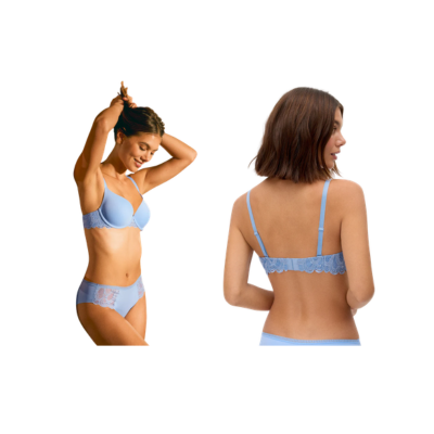 Sujetador clásico con aro y con relleno. Destaca por su sujeción y sus delicados detalles de encaje de inspiración floral.